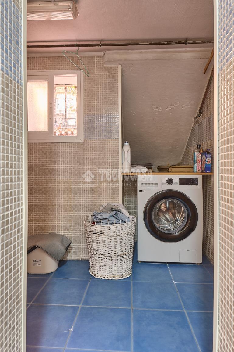 En la planta baja / garaje, dispone de un amplio espacio con capacidad para dos vehículos, zona destinada a armarios empotrados, baño completo y sala de lavado, aportando una funcionalidad muy poco habitual.