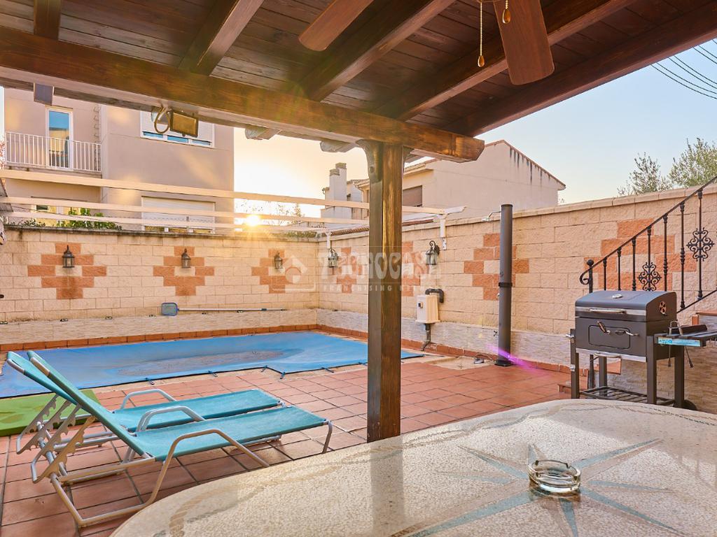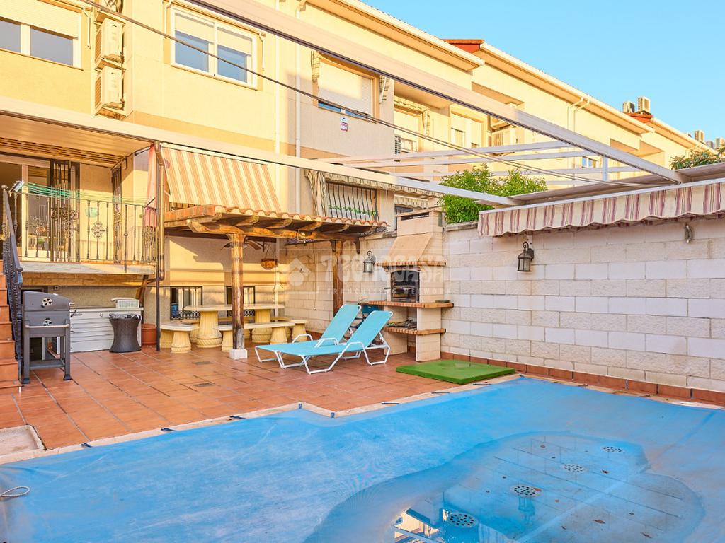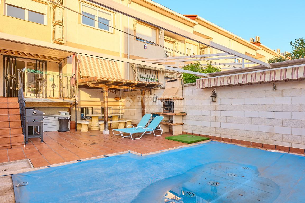 En la parcela trasera, la casa dispone de una piscina de obra y un agradable cenador, creando un entorno perfecto para el disfrute exterior y reuniones familiares.