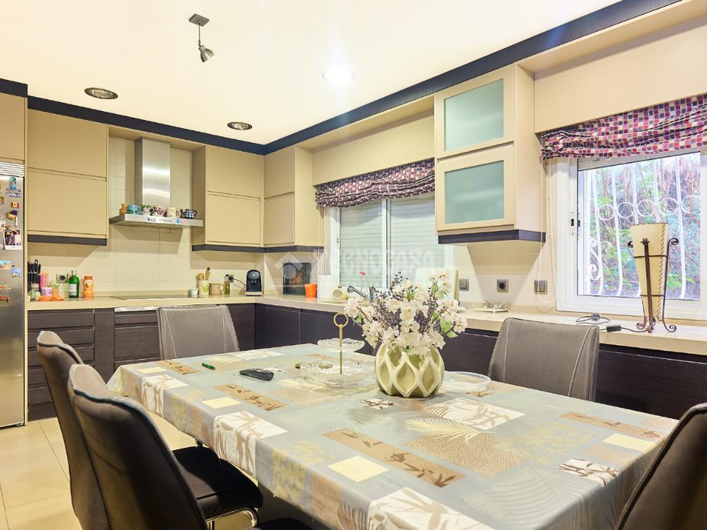 Dispone de un gran salón muy luminoso, perfecto para reuniones familiares, y dos cocinas totalmente equipadas, lo que aporta una gran versatilidad a la vivienda. Además, cuenta con bodega, garaje y amplias zonas de almacenamiento.